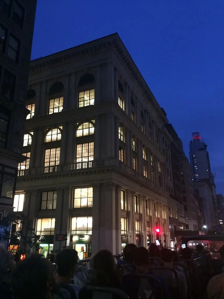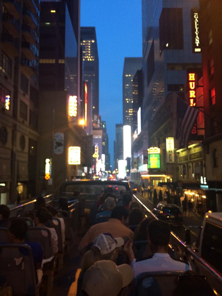 After one thoroughly enjoyable bus tour, it took little persuasion to go back for another route as dusk fell. There’s something about a big city at night. Perhaps it’s an optical illusion, the built environment looming bigger in the frame once daytime’s azure infinity is replaced by the claustrophobic cloak of black. Maybe it’s the excitement (anticipation? fear?) that the denizens of the dark are on the streets. Or it may just be the childlike enjoyment of seeing lots of lights — an achievement of invention, industry and economics easily dismissed but still remarkable upon reflection.